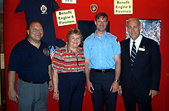 One of the most meaningful moments of our tour occurred when FDNY Firefighter Billy King of Engine #6 attended our two Bon Voyage concerts at Dickinson College. The concerts were performed before two full houses, and Mayor Kirk Wilson was present to help honor this member of a fire engine company which lost 4 of it's 5 men on duty September 11th. The Sound of America released a tribute CD, entitled, "A Patriotic Tribute" honoring the victims and families of those involved with the September attacks. All the proceeds from these CD's will go to Fire Engine #6 to help the families and other firefighters. The CD's contain patriotic music recorded live by SOA over the past 16 years. It was quite an honor that Firefighter Billy King took the time to come to our concerts. Several hundred CD's were bought by Europeans this past summer. It is our hope to continue to sell these CD's to help the victims of the attacks. More